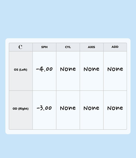 You’ll see a minus sign in front of the numbers under your prescription’s SPH or CYL columns.